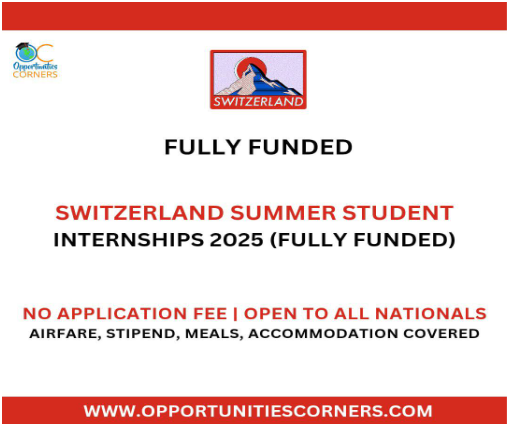 Switzerland, renowned for its world-class education system and cutting-edge research institutions, has announced an exciting opportunity for students globally—a fully funded summer internship program.fully-funded-summer-internships-Switzerland-2025- fields. This prestigious initiative aims to attract talented and motivated students from all nationalities, offering them a chance to gain hands-on experience in some of the world’s top research environments.